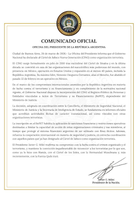 This morning, the Argentine government declared the Jalisco New Generation Cartel (CJNG) a terrorist organization. The designation, the first in Latin America, signals alignment with the Trump administration at a time when close ties with Washington translate into domestic political benefits.