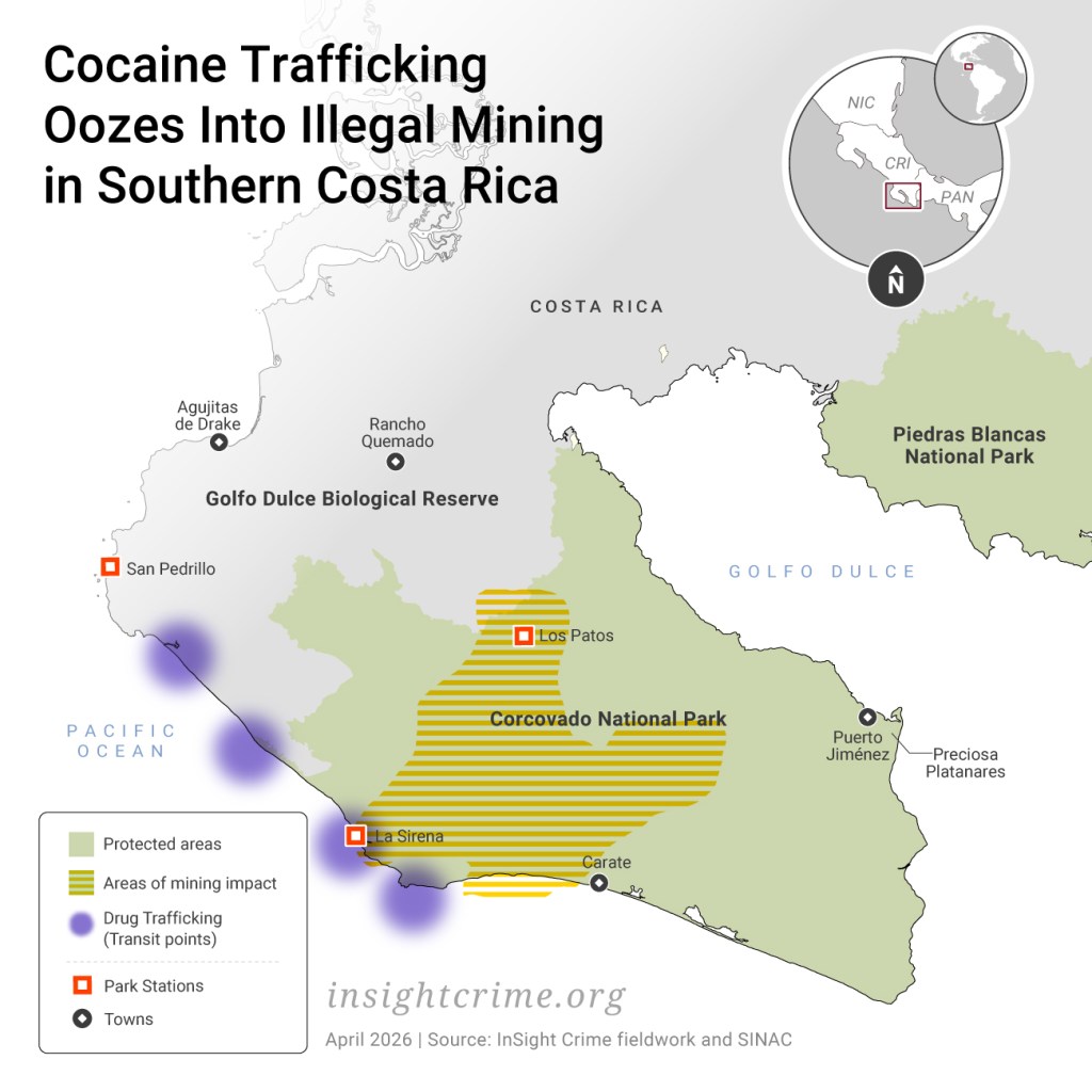 But as cocaine trafficking oozes into other criminal economies like illegal mining inside Corcovado, it’s become increasingly complicated for the park rangers to protect its natural resources amid a lack of resources and operational support.
