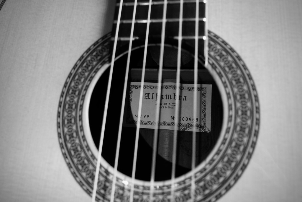 Searching for a proper nylon-stringed classical guitar, I descend the stairs into Dusty Strings, an underground shop in Seattle just across the Fremont Bridge. They have several classical guitars hanging on the wall. Another customer side eyes me as I smell each guitar: one from Uruguay, a few from Japan, one from China, another from Bulgaria. A Californian one too. And then I see an Alhambra, built in Muro de Alcoy, Spain.