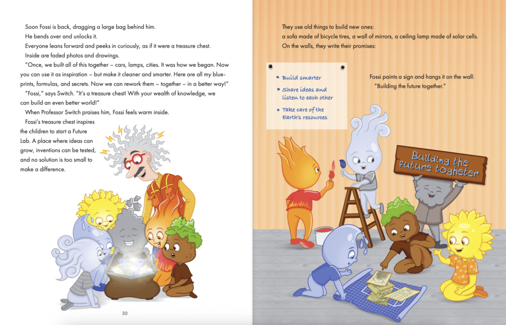 The first, in 2023, taught children about the potential of geothermal energy as a clean and renewable fuel. The book did not include the character ‘Fossi’.