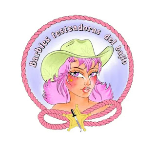 Thus, *Barbies Testeadoras del Bajío* was born. Their logo speaks volumes: it features a young woman with pink-dyed hair, wearing a pistachio-green cowboy hat and makeup, shown in profile with a “duck face” expression. Above her appears the organization’s name, while below lies a rope tied in a bow shape, overlaid with a star that features a dropper at its center—much like the droppers used to apply reagents when analyzing drugs.