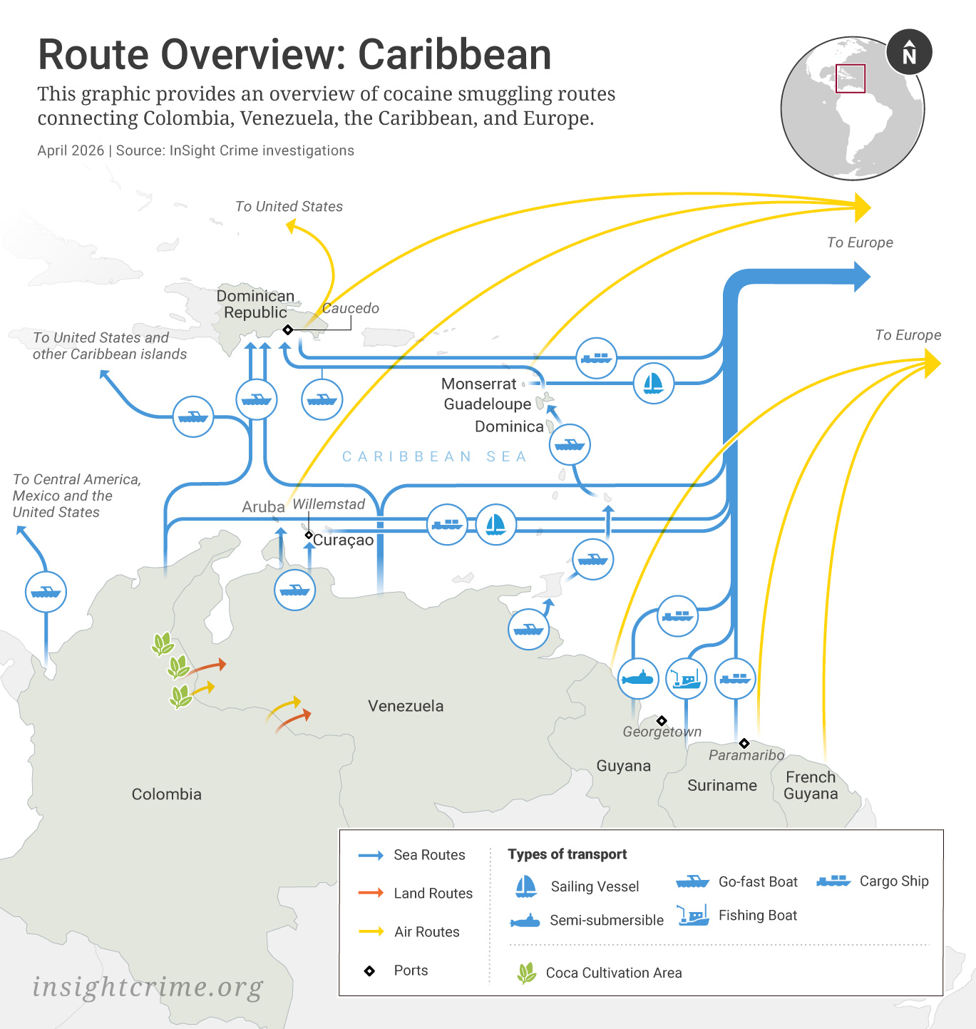 The Caribbean route emerged in the early 1980s, when South American traffickers began using the region’s islands as refueling stops for flights carrying cocaine to the United States. Law enforcement pressure later pushed much of this traffic toward Central America, but the Caribbean never disappeared from the trafficking map. Instead, its role has ebbed and flowed, with smugglers reviving routes when pressure rises elsewhere. In the past decade, growing demand for cocaine in Europe has helped drive a renewed surge in trafficking through the region.